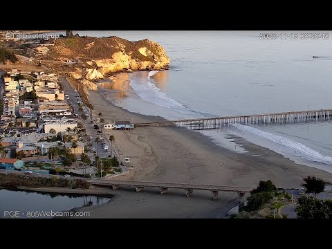live view over the beach of the amazing town nestled on California's Central Coast,known for its Avila Main Beach and other popular attractions, which include: Pirate's Cove Beach,